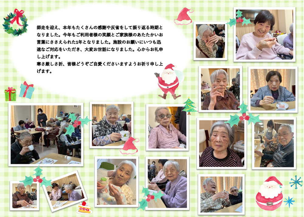 今年もご利用者様の笑顔とご家族様のあたたかいお言葉に支えられた一年となりました。